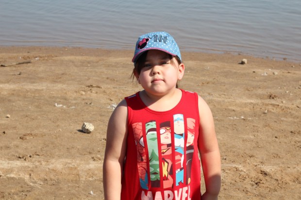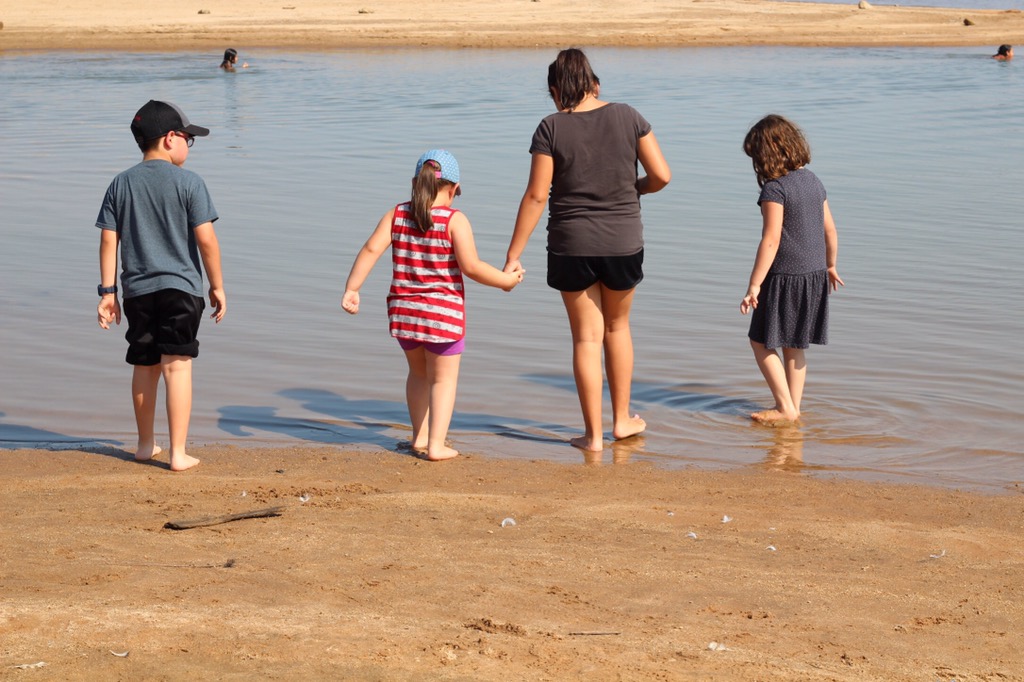 This past weekend we took a trip to Folsom Lake with our friends and their three girls. It was a nice and relaxing quick drive to escape the city. We packed a nice picnic lunch complete with snacks and drinks, as well as a deck of Uno cards for the kids to play with. Our friends even packed a nice bottle of red wine for the “big kids.” And by “big kids” I do mean the adults people. Anyway…we had an awesome time. The kids got to get their feet wet in the lake and enjoyed that. It was a nice 15 minute walk down to the lake from where we found our picnic spot. The water level was pretty low, so we were told it would be quite a walk just to get down there. But, the kids enjoyed the walk. I however, did not. I was wearing sandals and I had to avoid all the sharp glass and twigs that were in the sand. At least I didn’t end up cutting myself. I did get a few pictures of the kids from that day and I’m sharing them below.